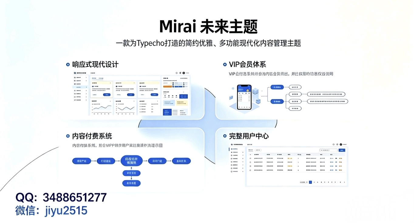 Mirai 未来主题是一款专为 Typecho 博客系统开发的简约优雅、多功能现代化内容管理主题